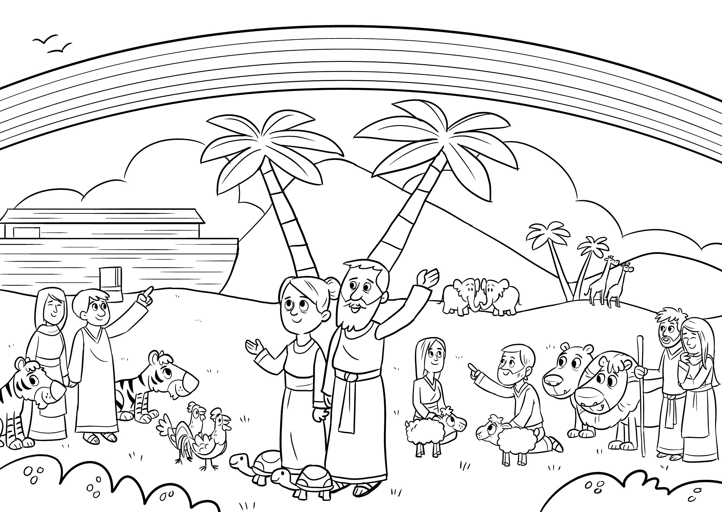 ![Раскраска Ковчег с радугой]()