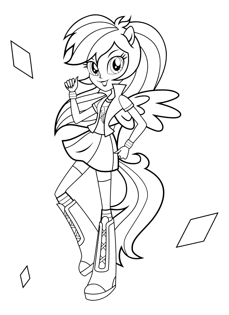Раскраски пони Эквестрия герлз Радуга Дэш раскраска