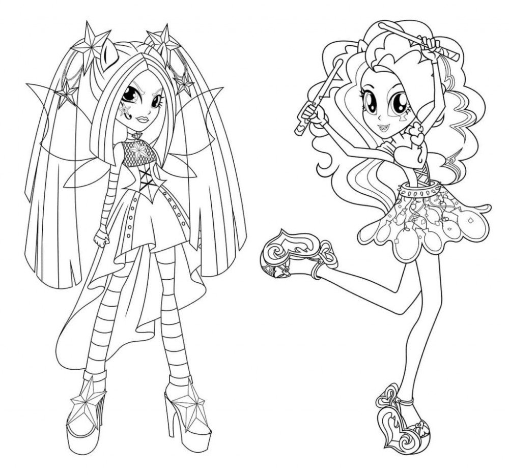 ![Раскраска Эквестрия герлз рок]()