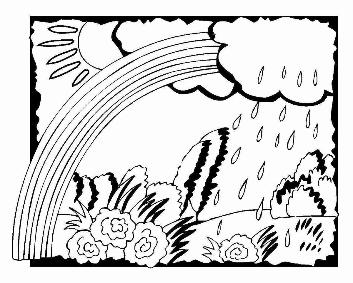 ![Пейзаж с радугой раскраска для детей]()