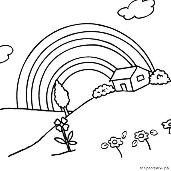 Пейзаж с радугой раскраска для детей