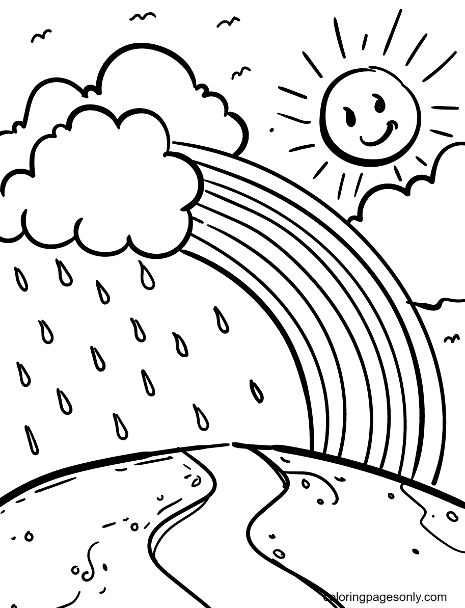 ![Раскраска пейзаж с дождем]()