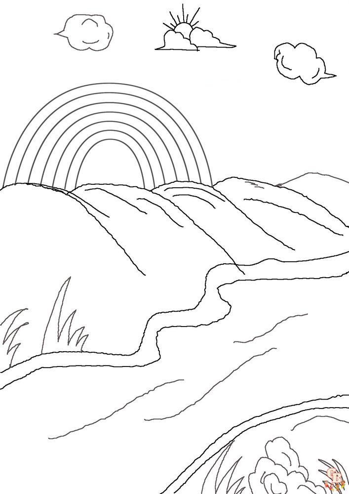 Пейзаж с радугой раскраска для детей