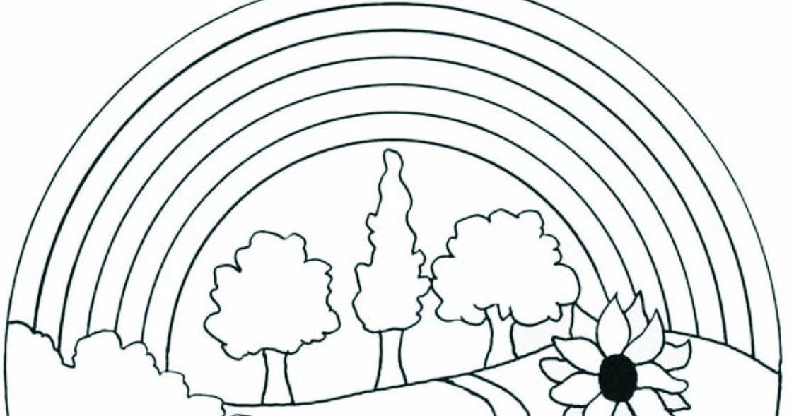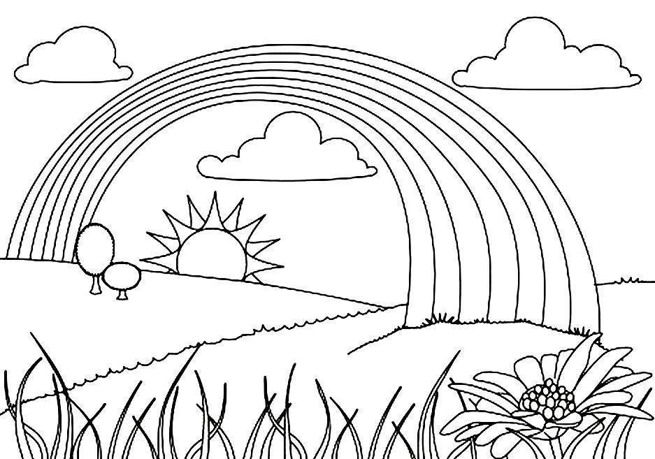 ![Раскраска пейзаж с радугой]()