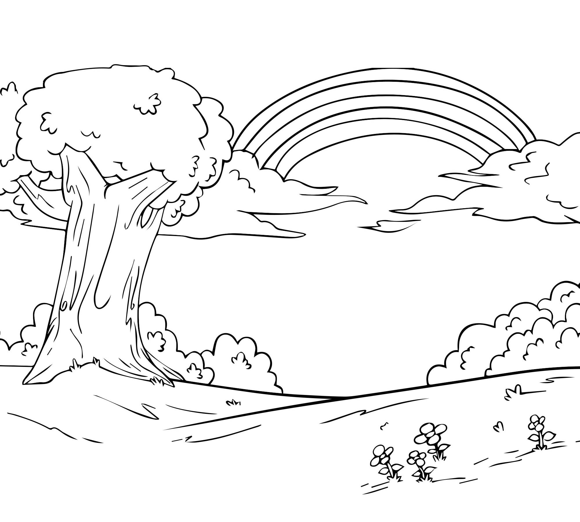 Раскраска пейзаж с радугой