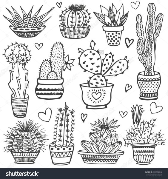 ![Маленькие кактусы черно белые]()