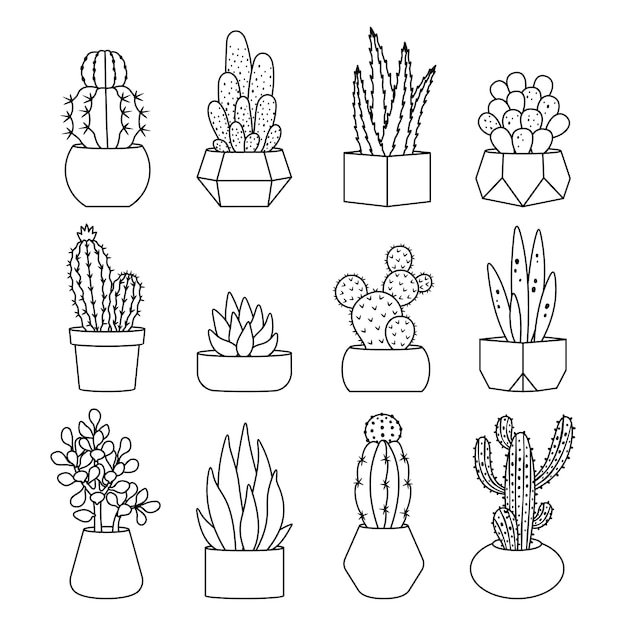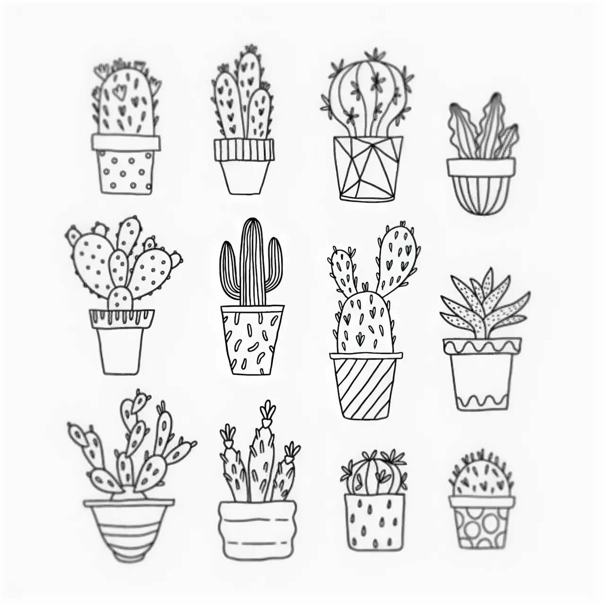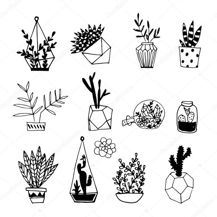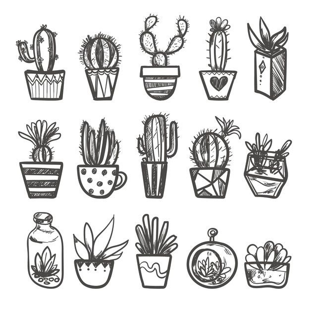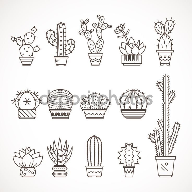 ![Маленькие кактусы черно белые]()