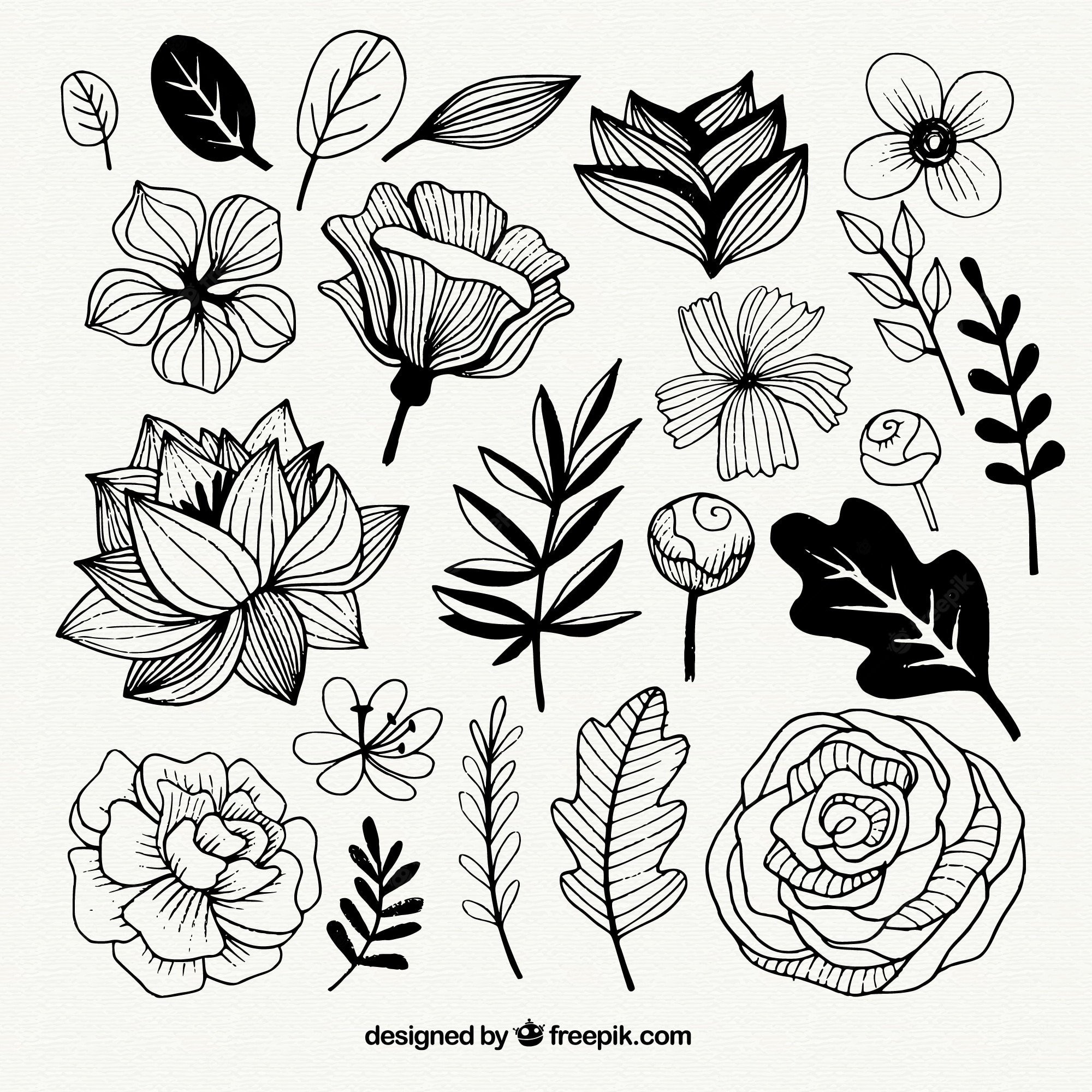 ![Цветы с листьями эскиз]()