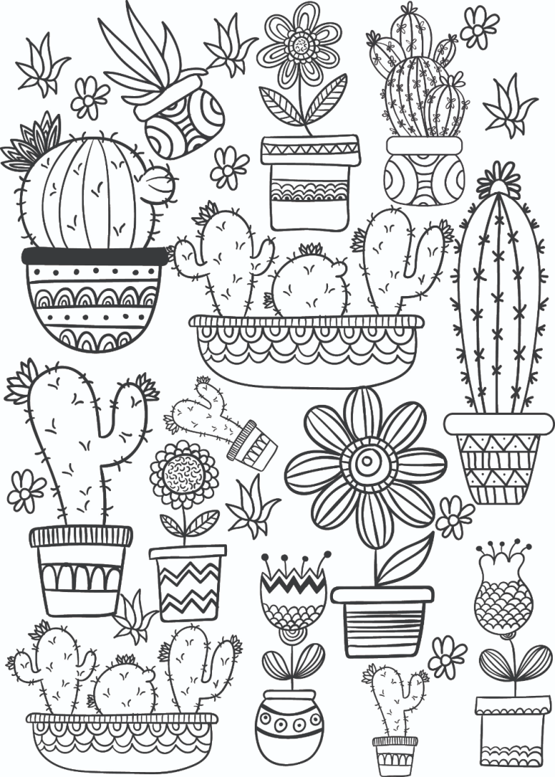 Раскраски антистресс растения кактусы