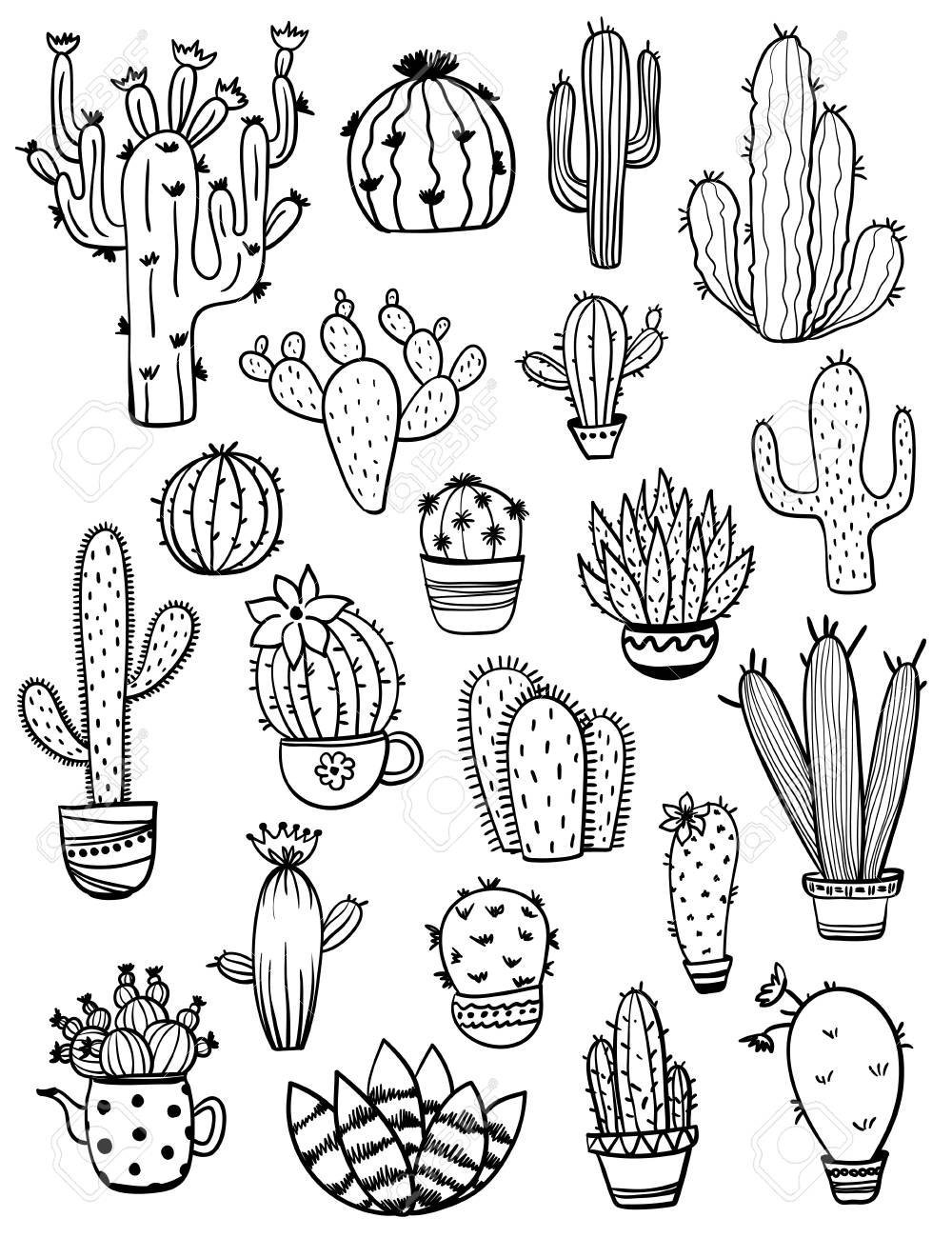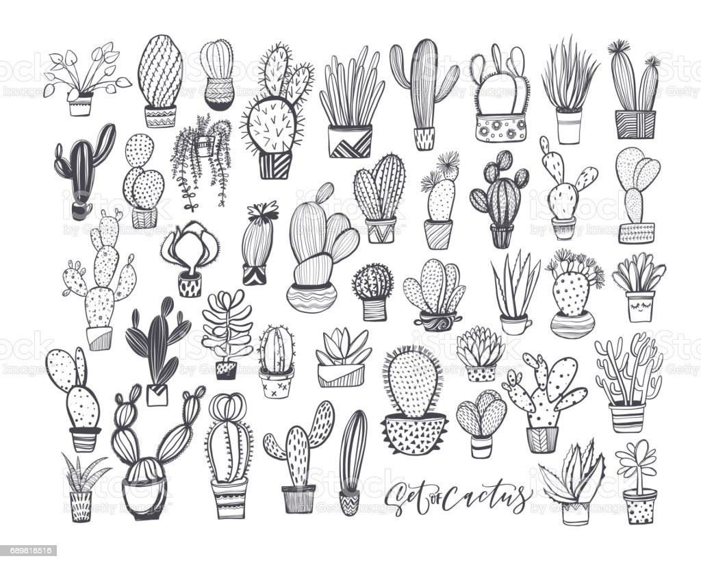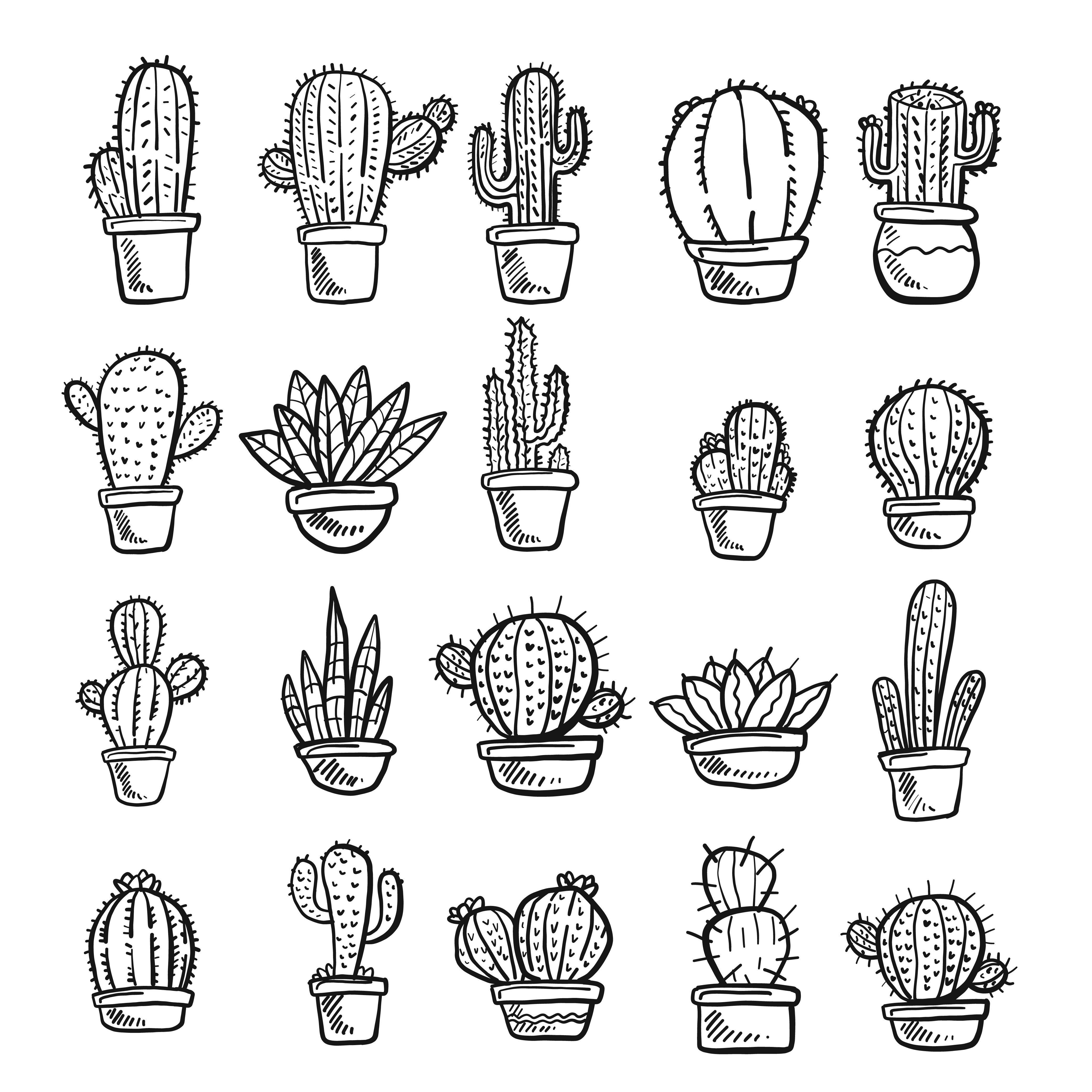 ![Дудл кактусы раскраска]()