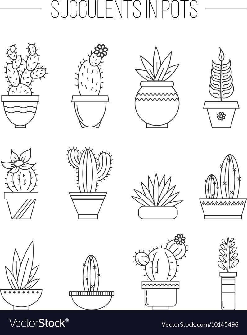 ![Суккуленты контур]()