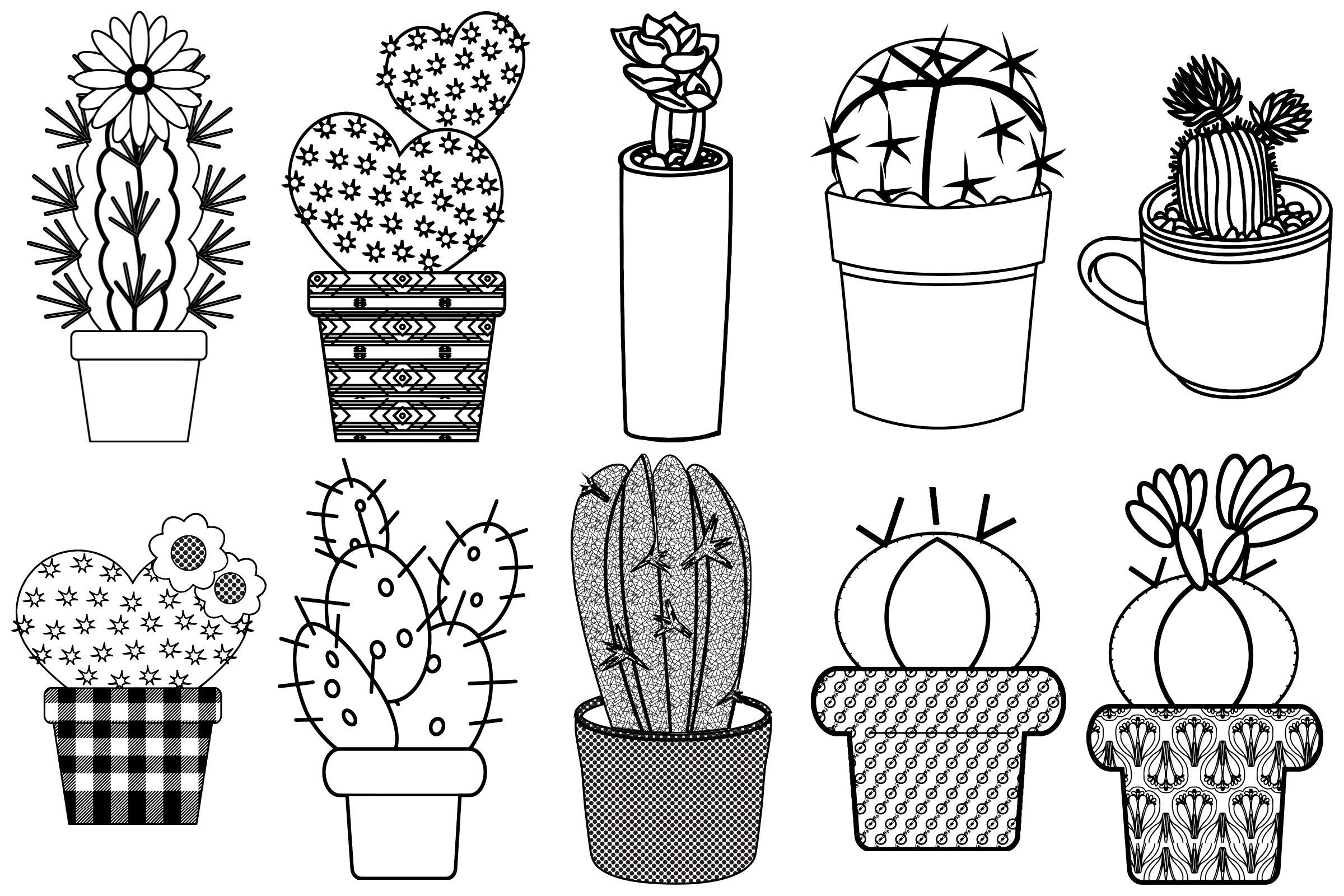 Стикеры для распечатки черно белые кактусы