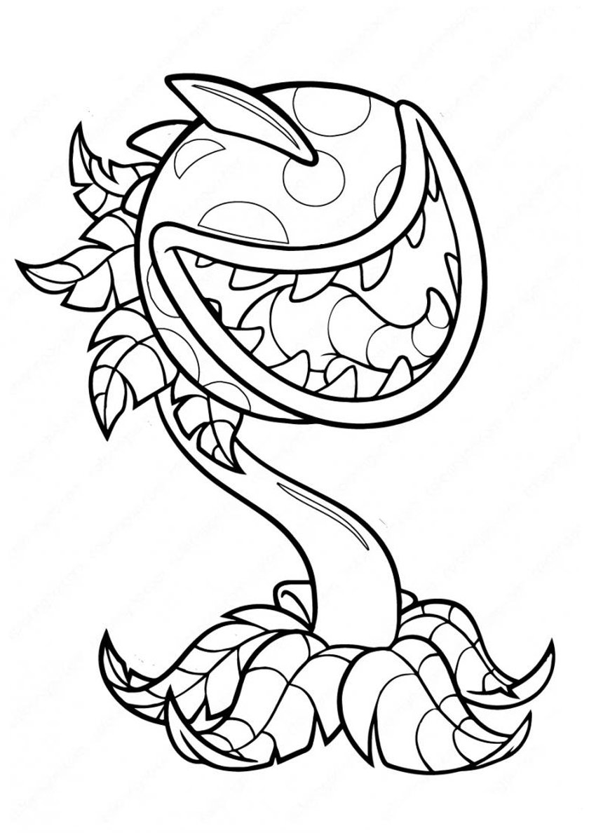 Растения против зомби раскраска Зубастик