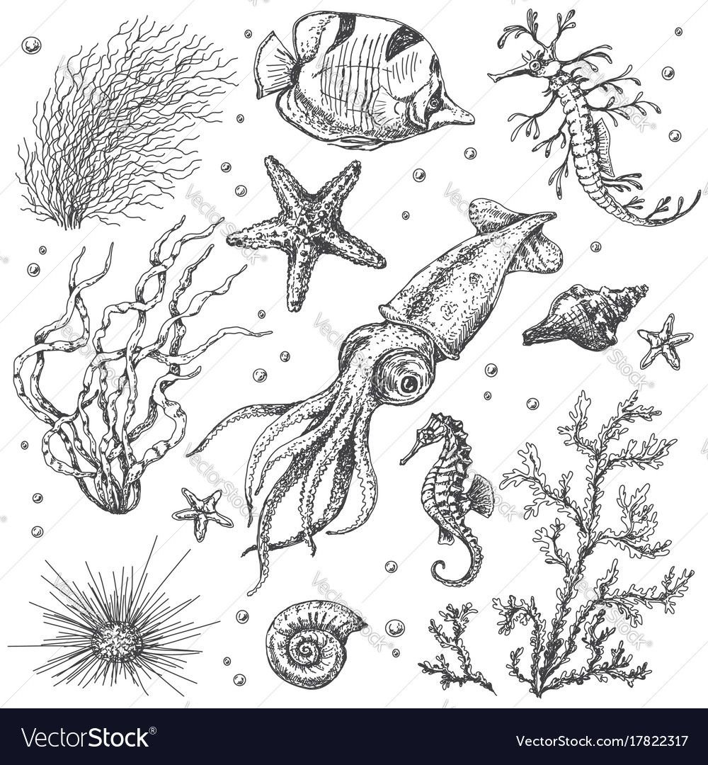 ![Скетч морские обитатели]()