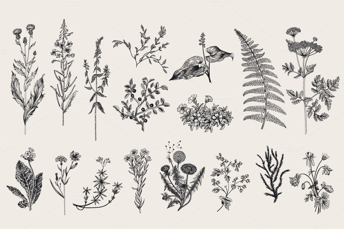 ![Эскизы растений]()