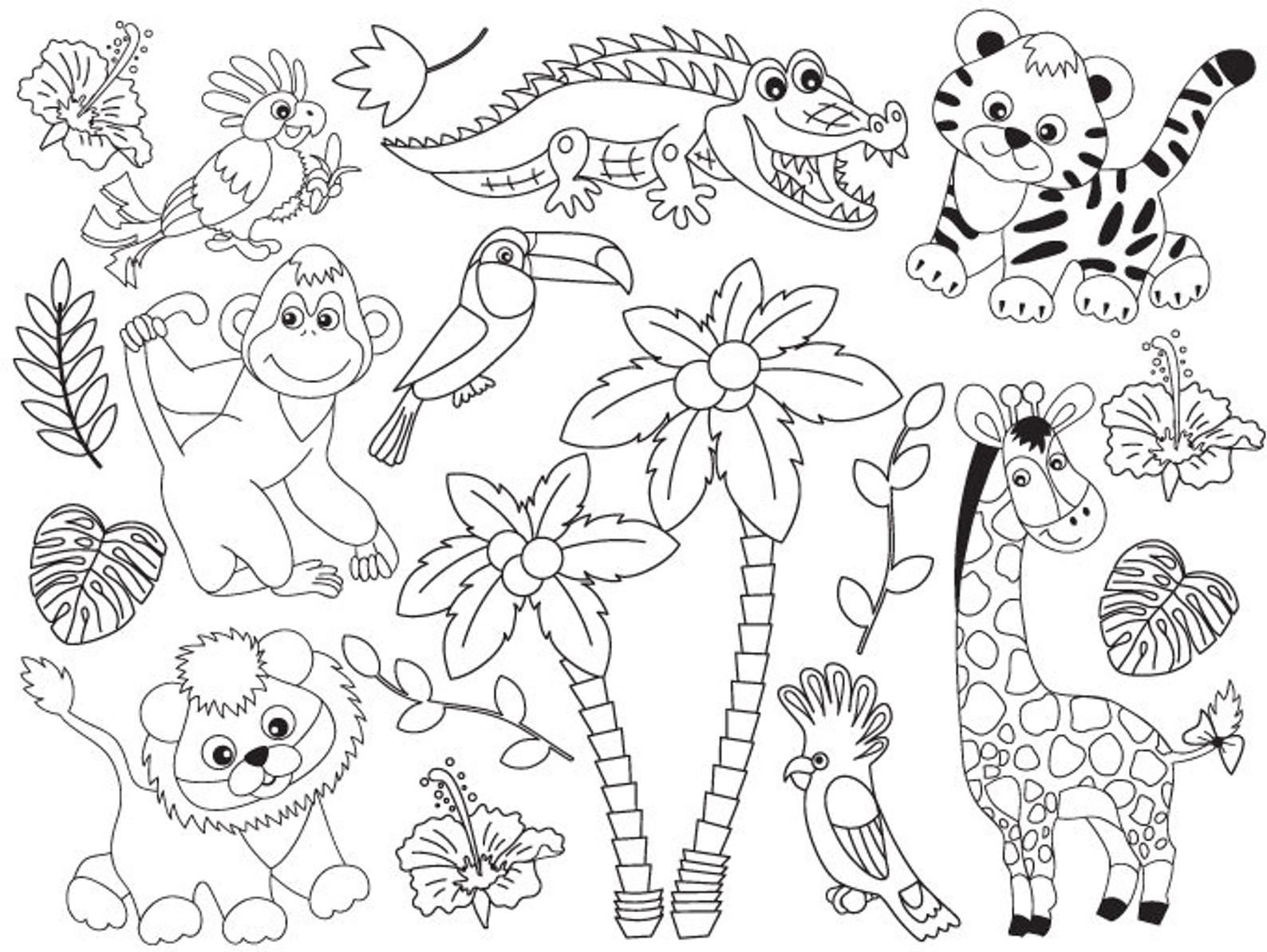 ![Животные джунглей раскраска]()