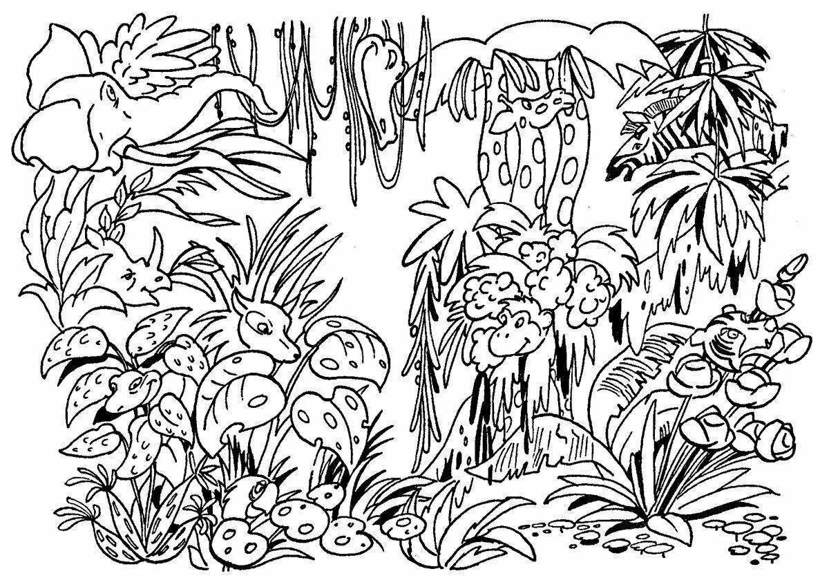 ![Тропические леса раскраска]()