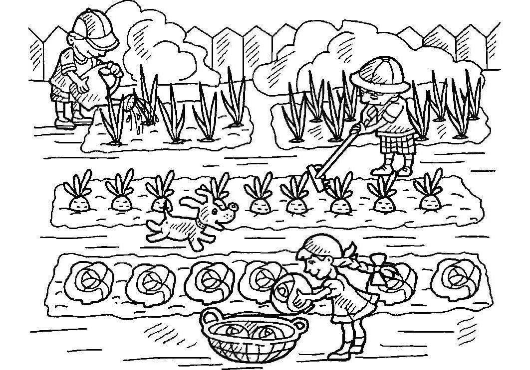 ![Огород раскраска для детей]()