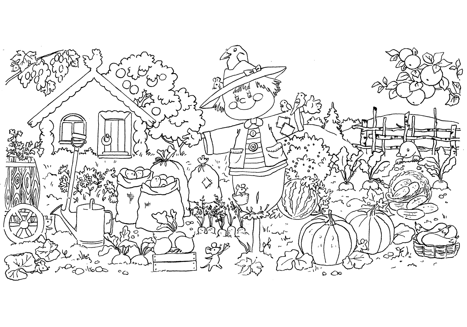 ![Огород для раскрашивания]()
