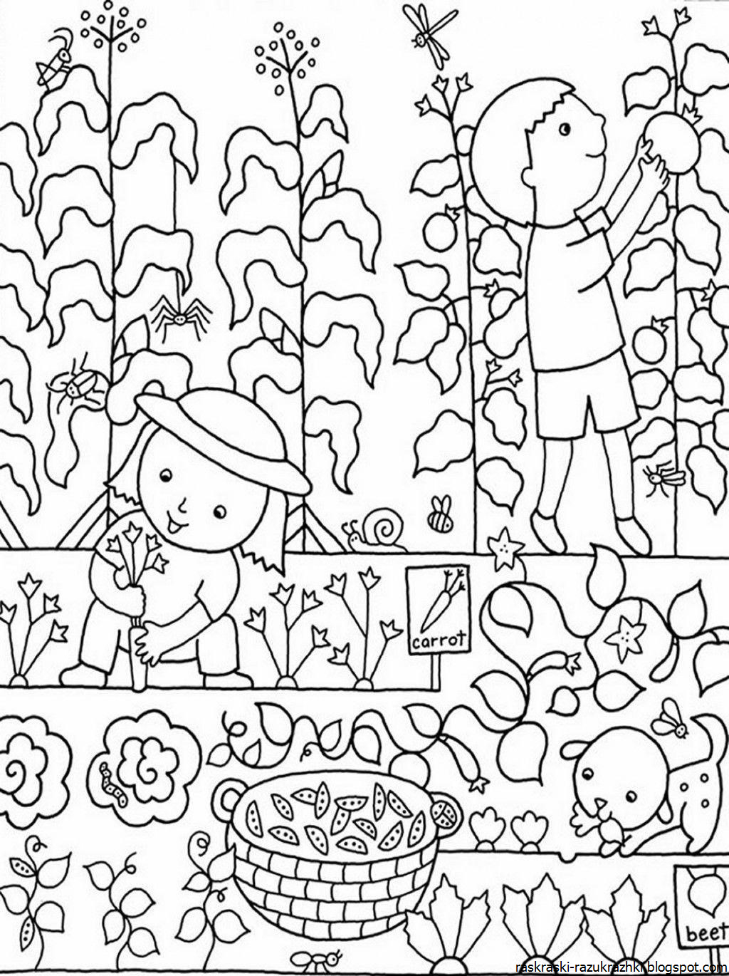 Огород раскраска для детей