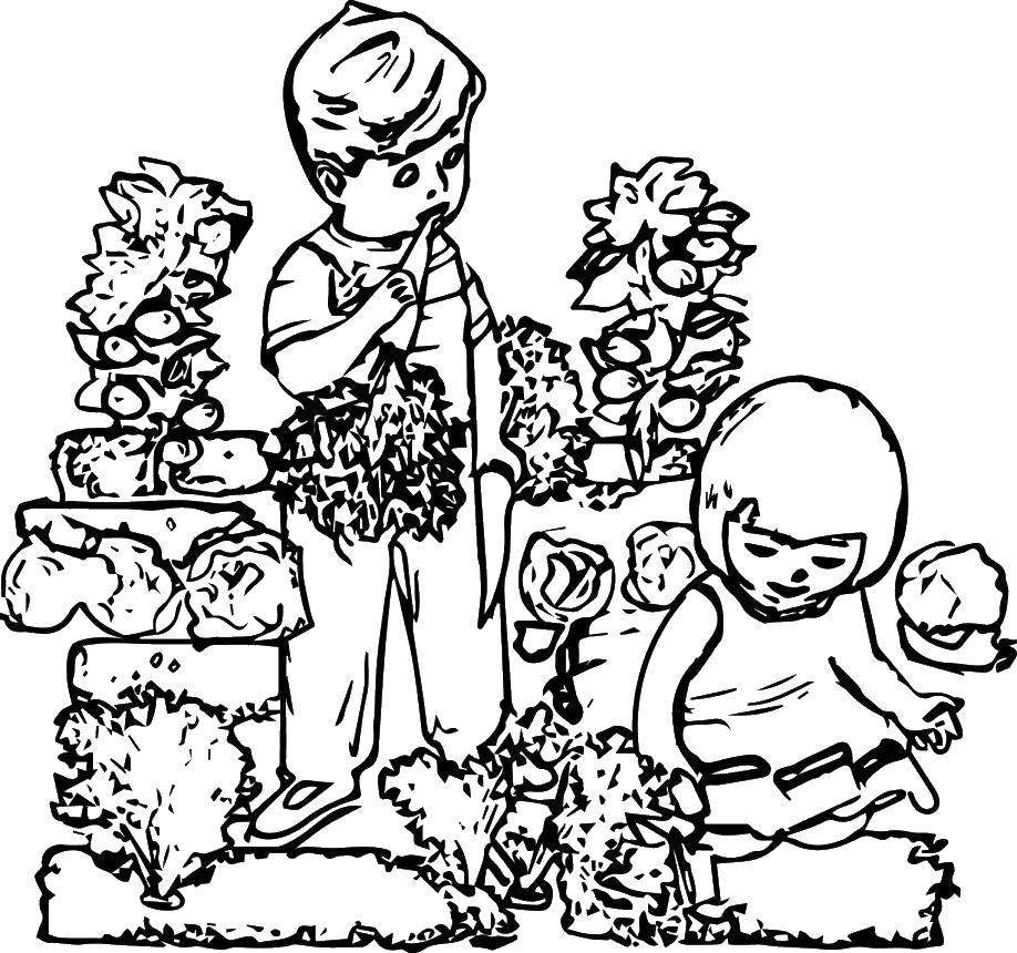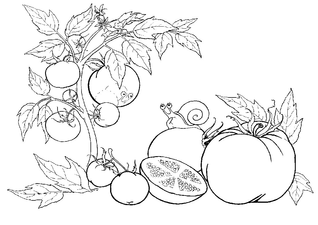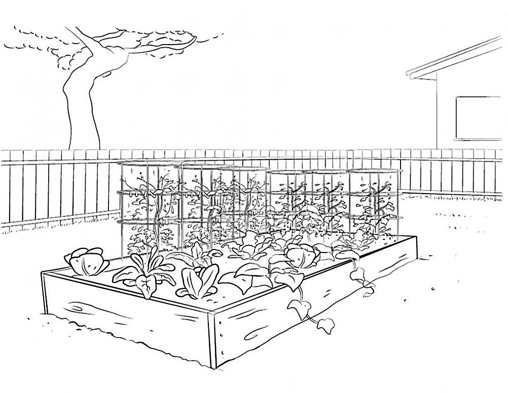 Раскраски огород с овощами