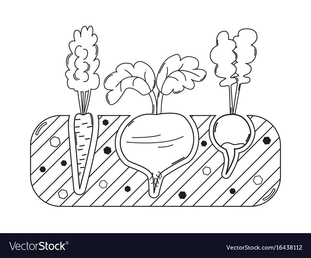 ![Овощи на грядке раскраска для детей]()