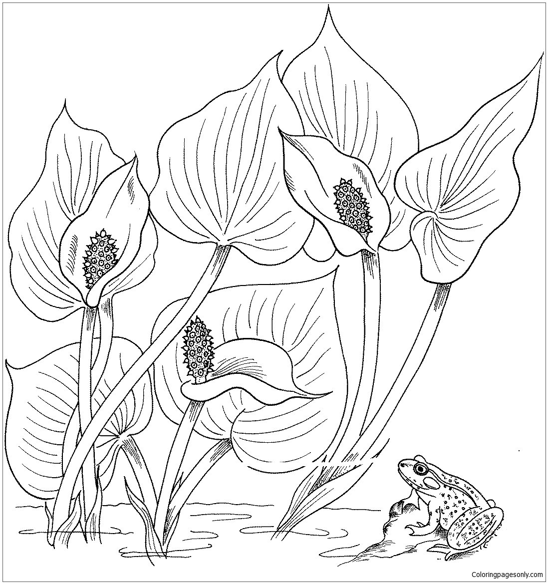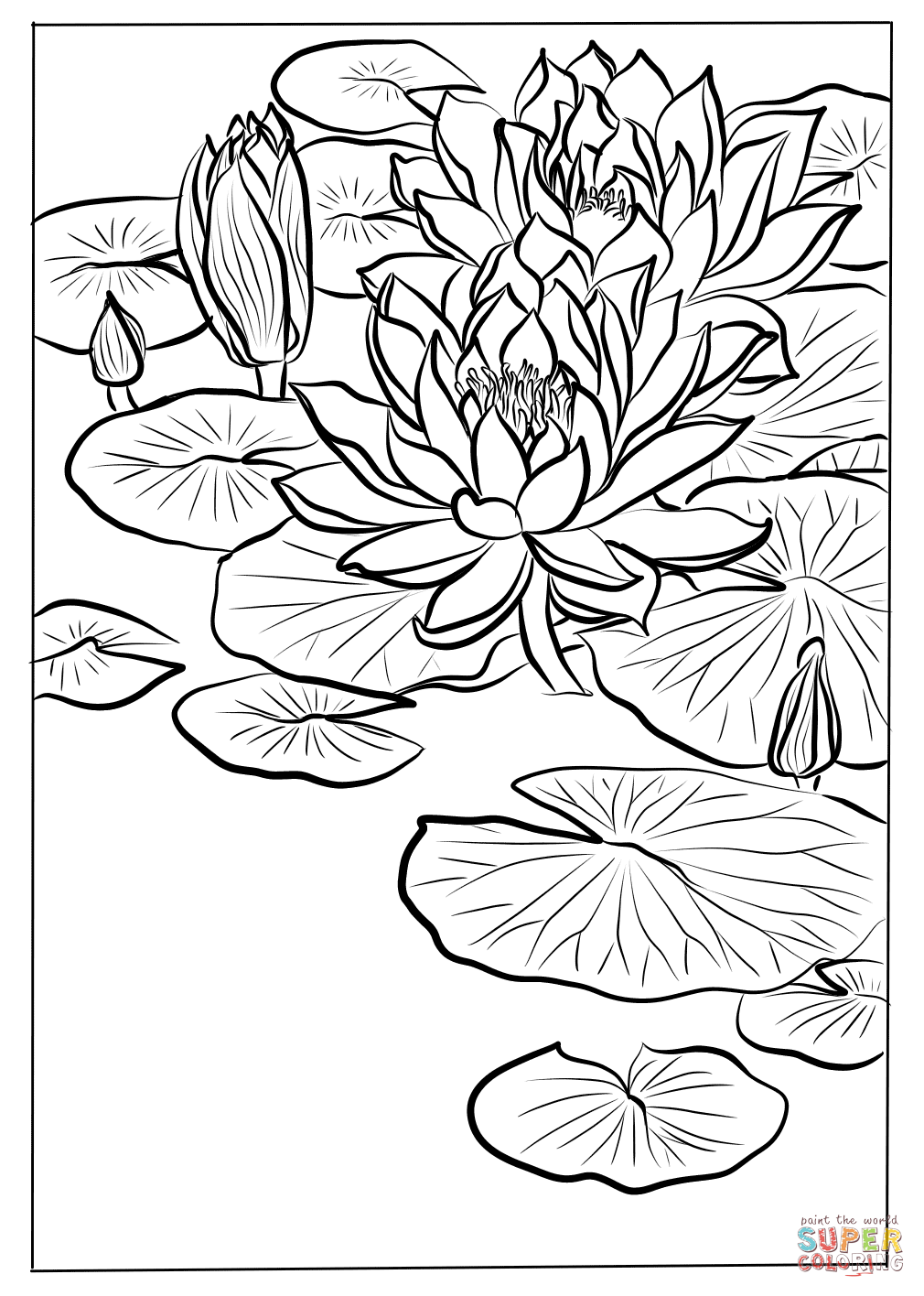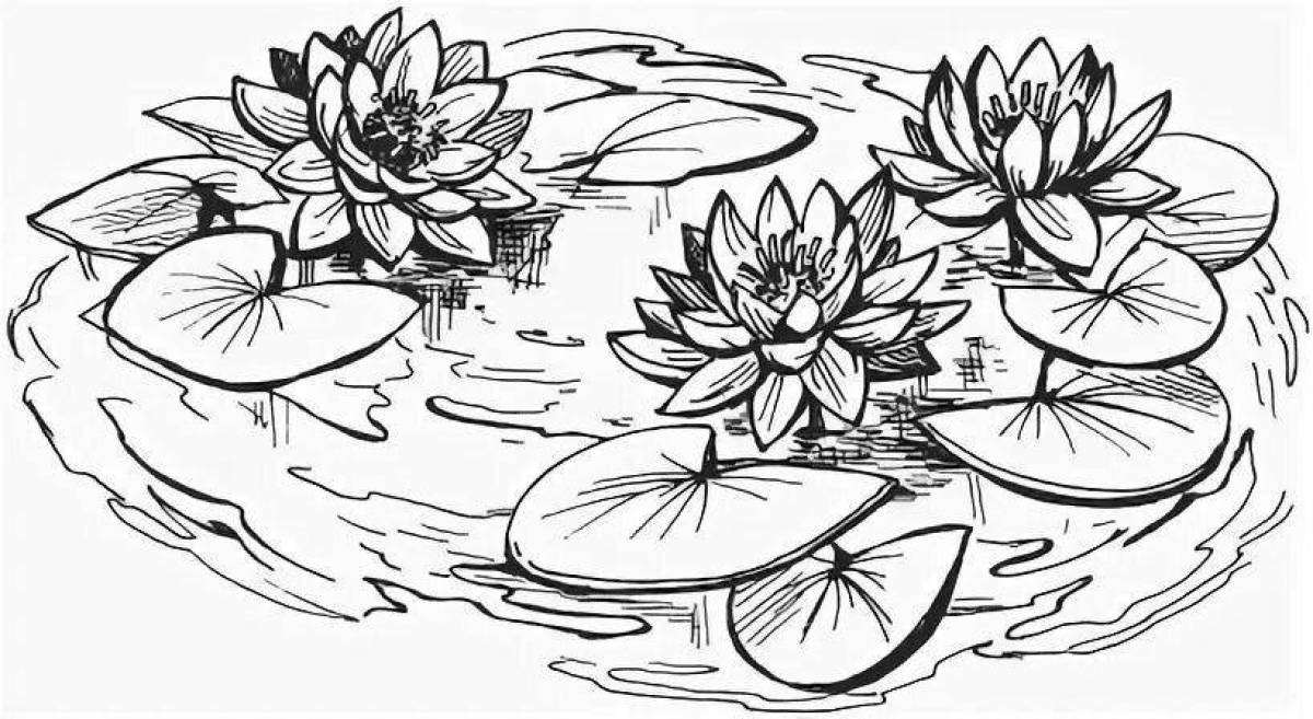 ![Растение кувшинка белая водяная Лилия раскраска]()