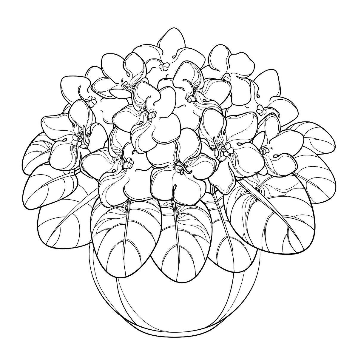 Раскраска комнатный цветок фиалка