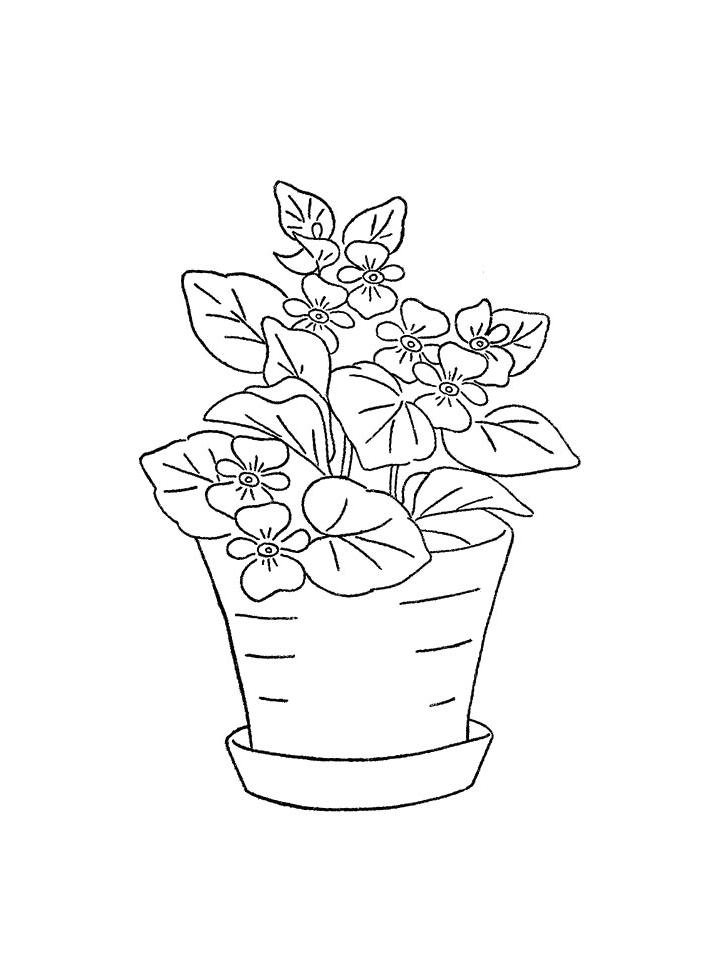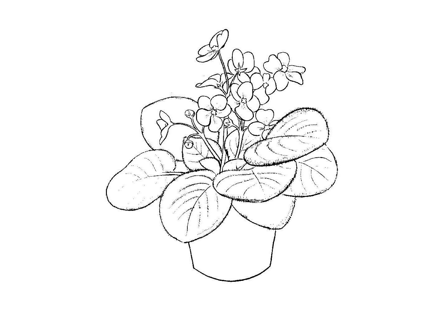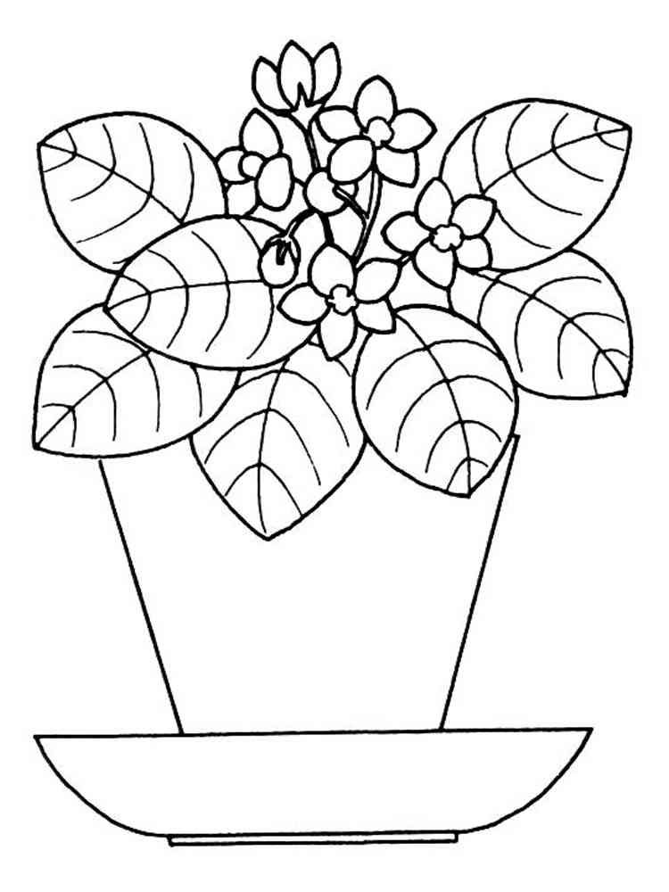 ![Раскраска комнатные растения фиалка]()