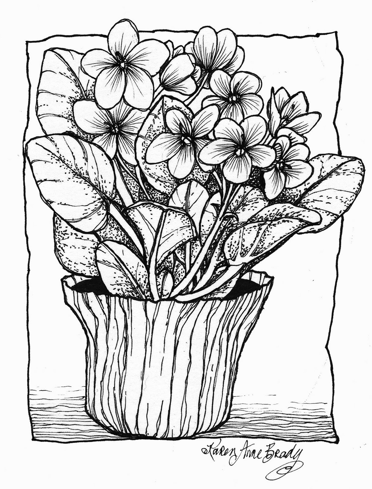![Раскраска комнатный цветок фиалка]()