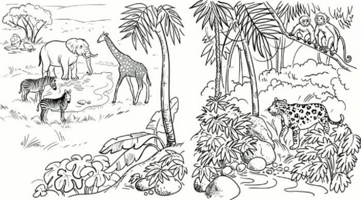 Животные тропиков раскраска
