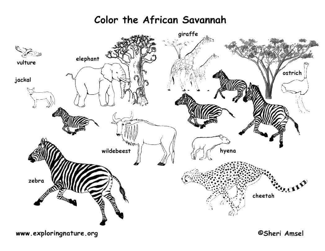 Животные саванны Африки раскраска