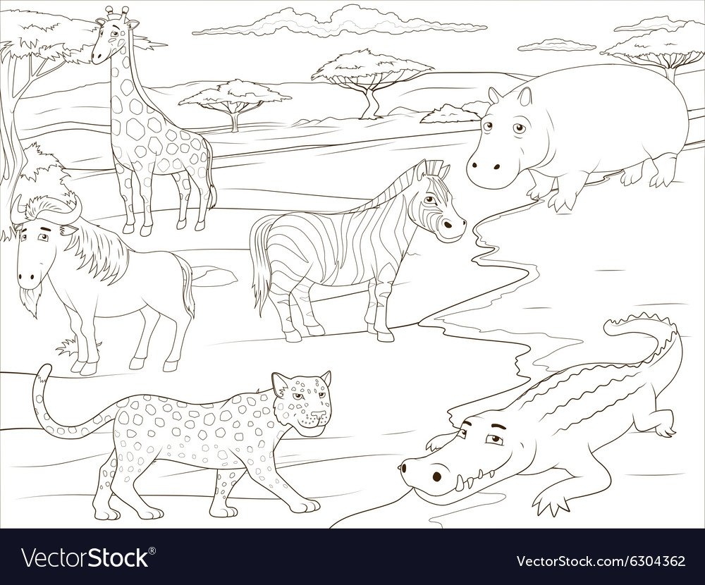 ![Раскраска животные саванны для детей]()