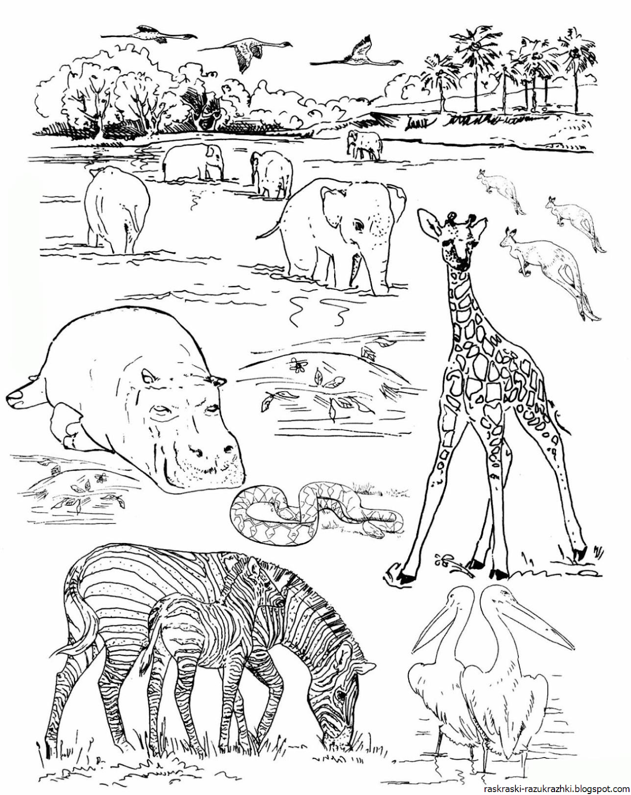 Раскраска животных Африки для детей