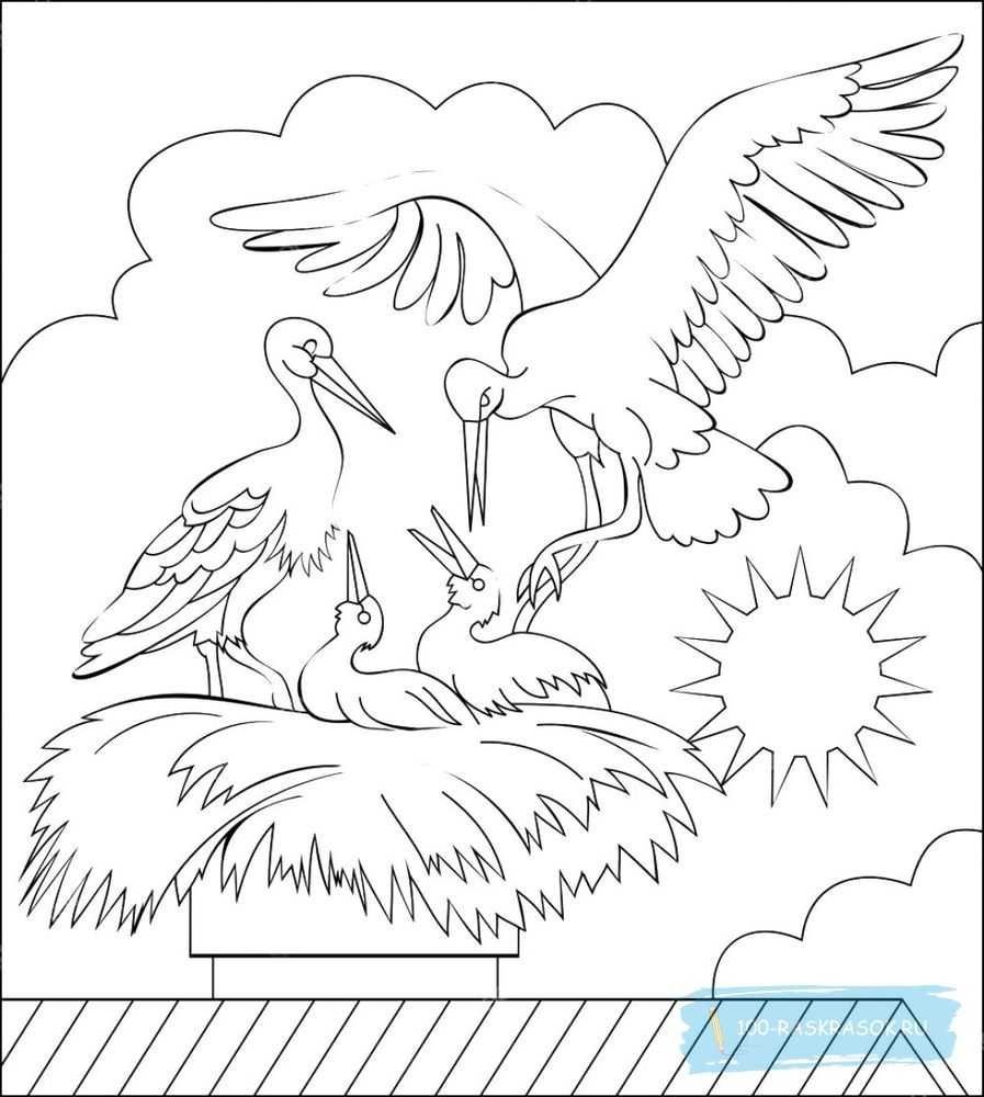 Аист раскраска для детей