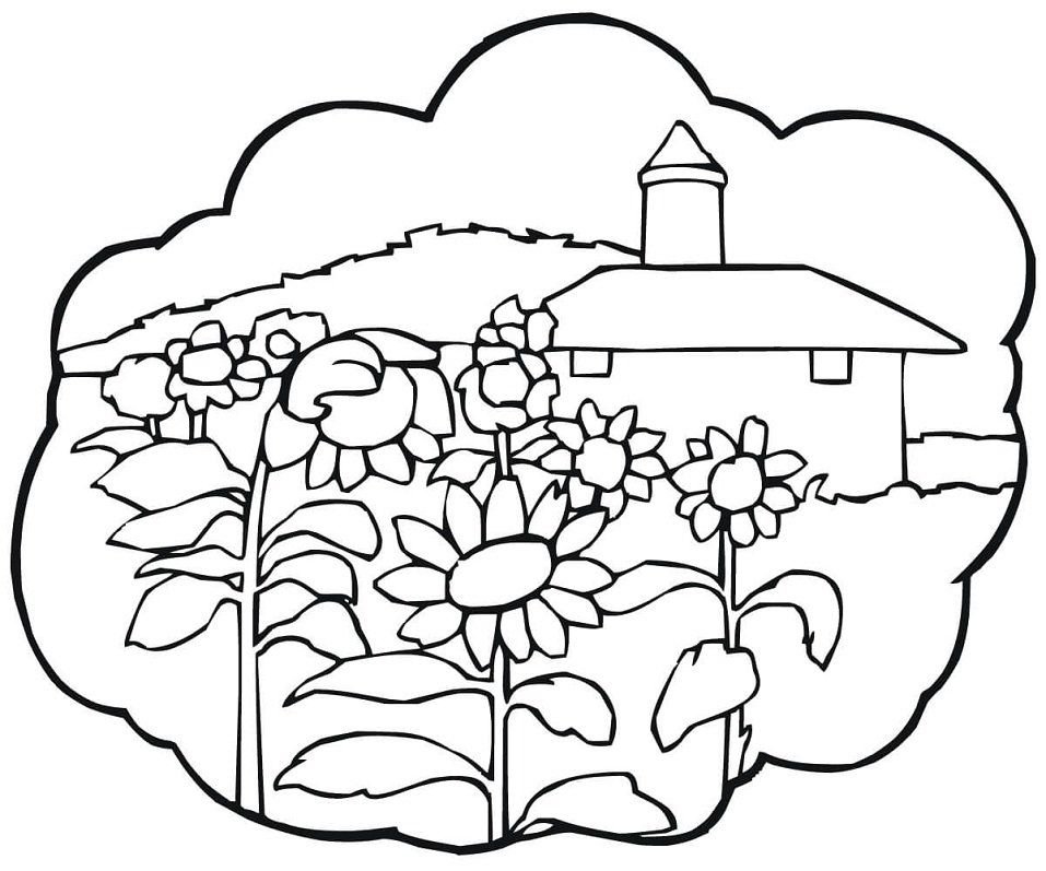 Деревенский пейзаж раскраска