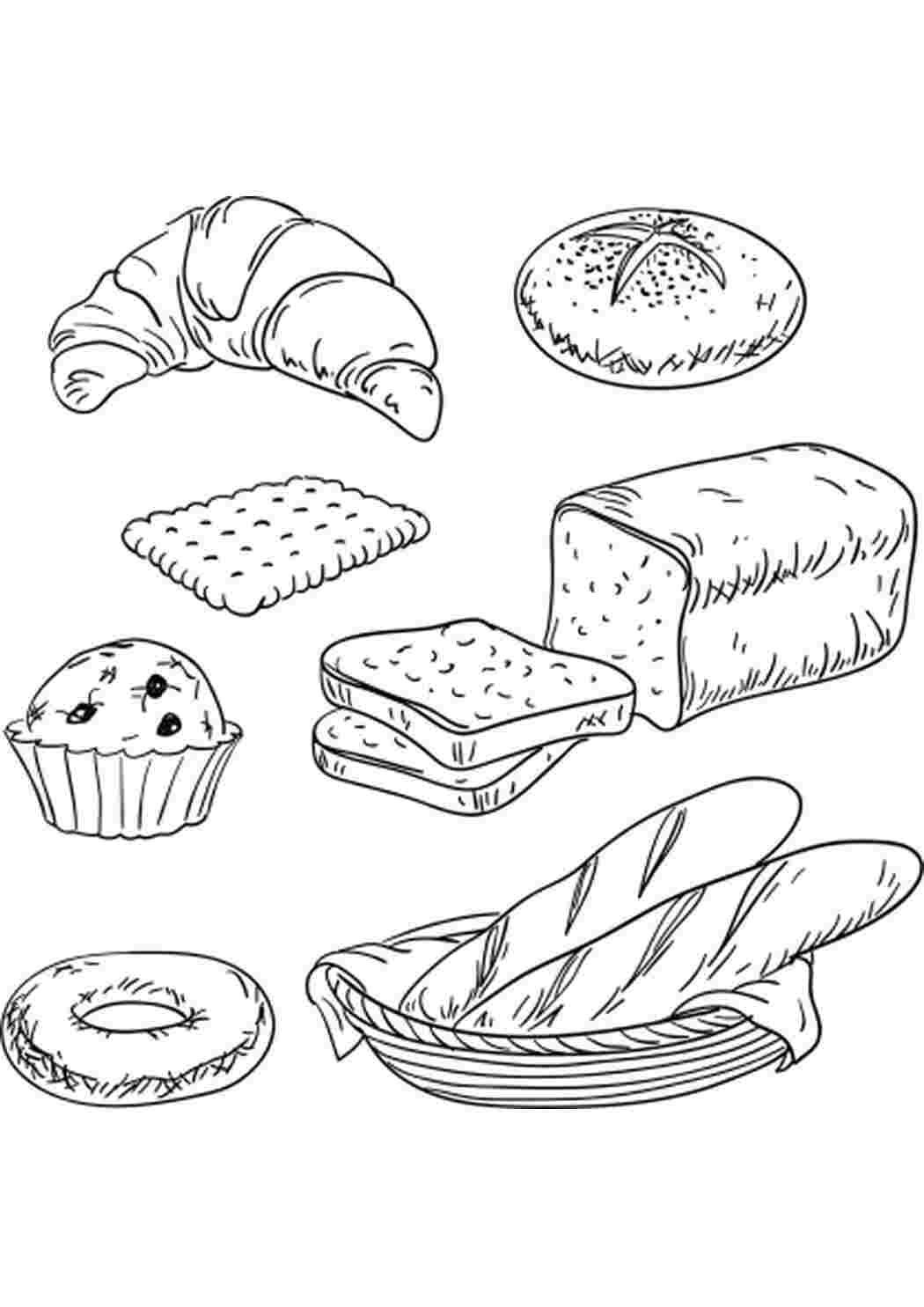 Раскраски хлеб хлебобулочные изделия тема