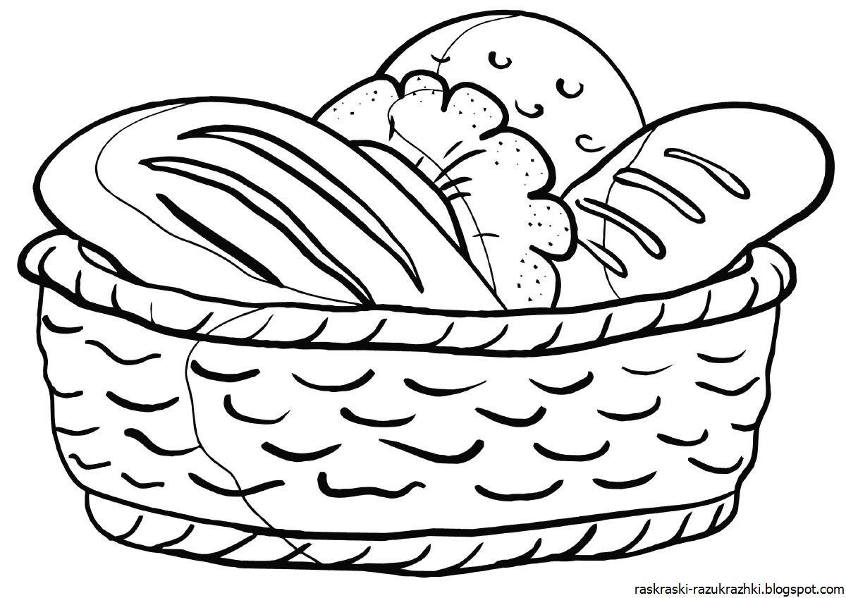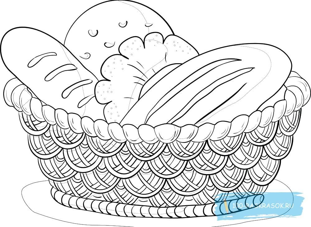 Корзинка с хлебом раскраска