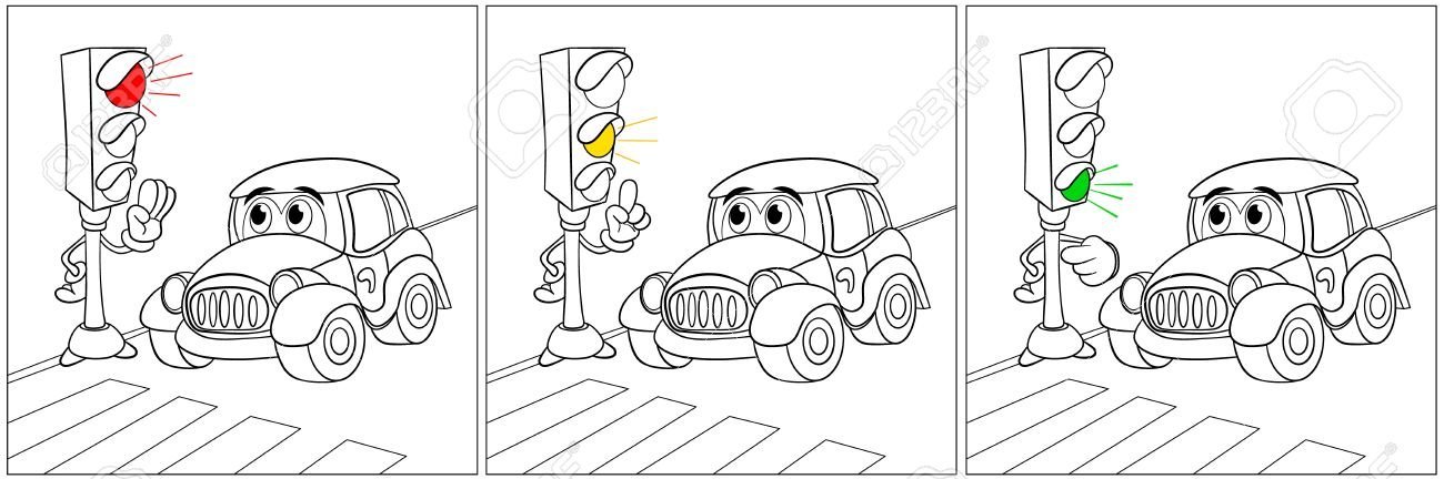 ![Машина и светофор раскраска]()