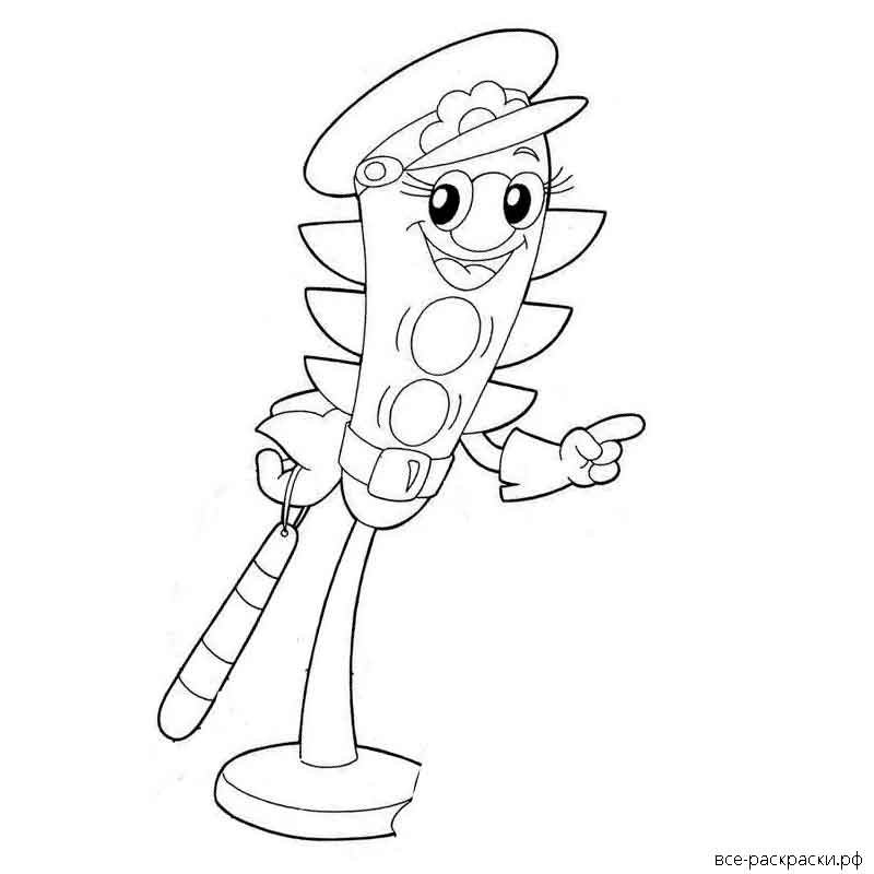 Раскраски ПДД для детей Светофорик