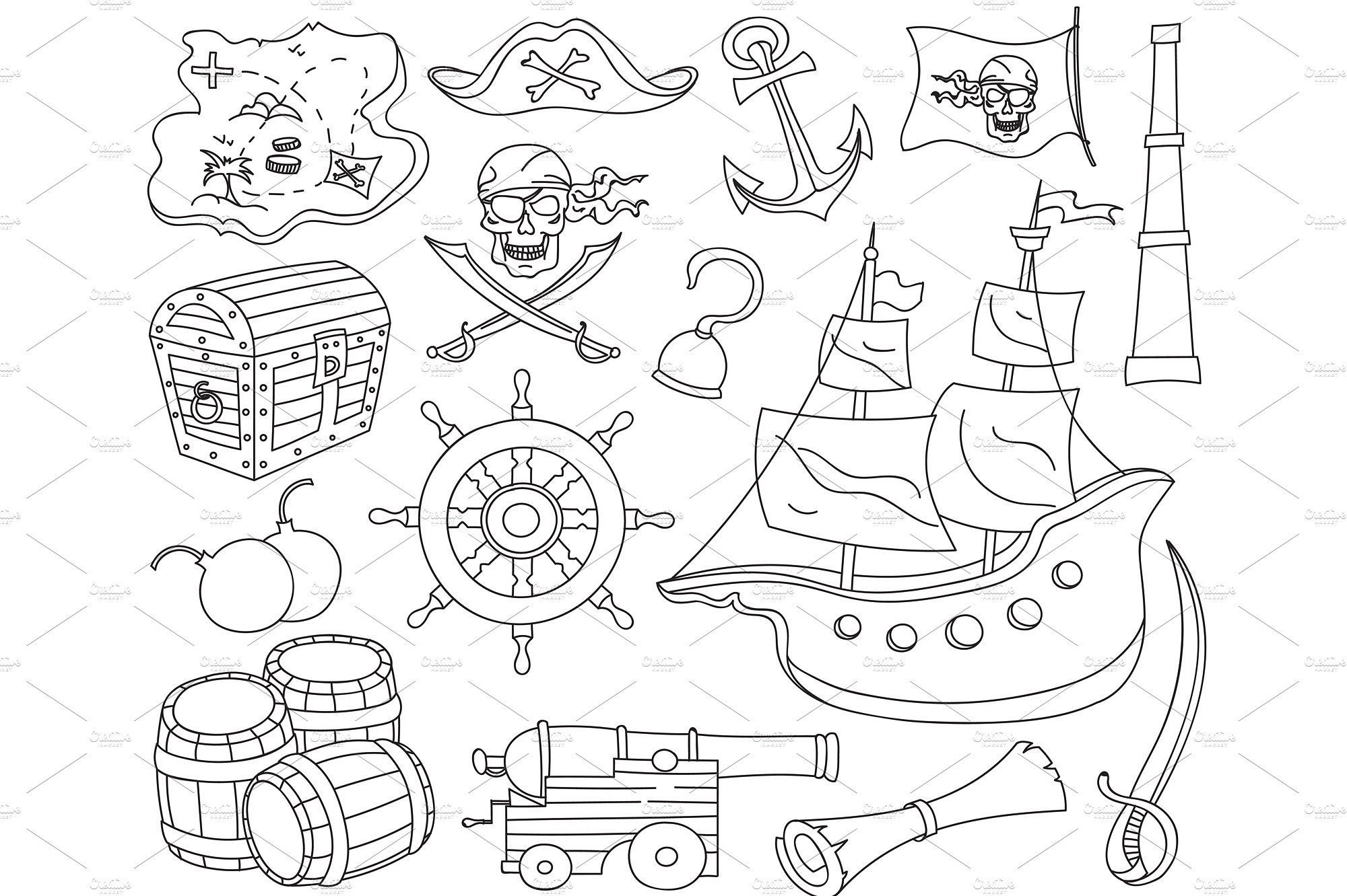 Пиратские атрибуты раскраски