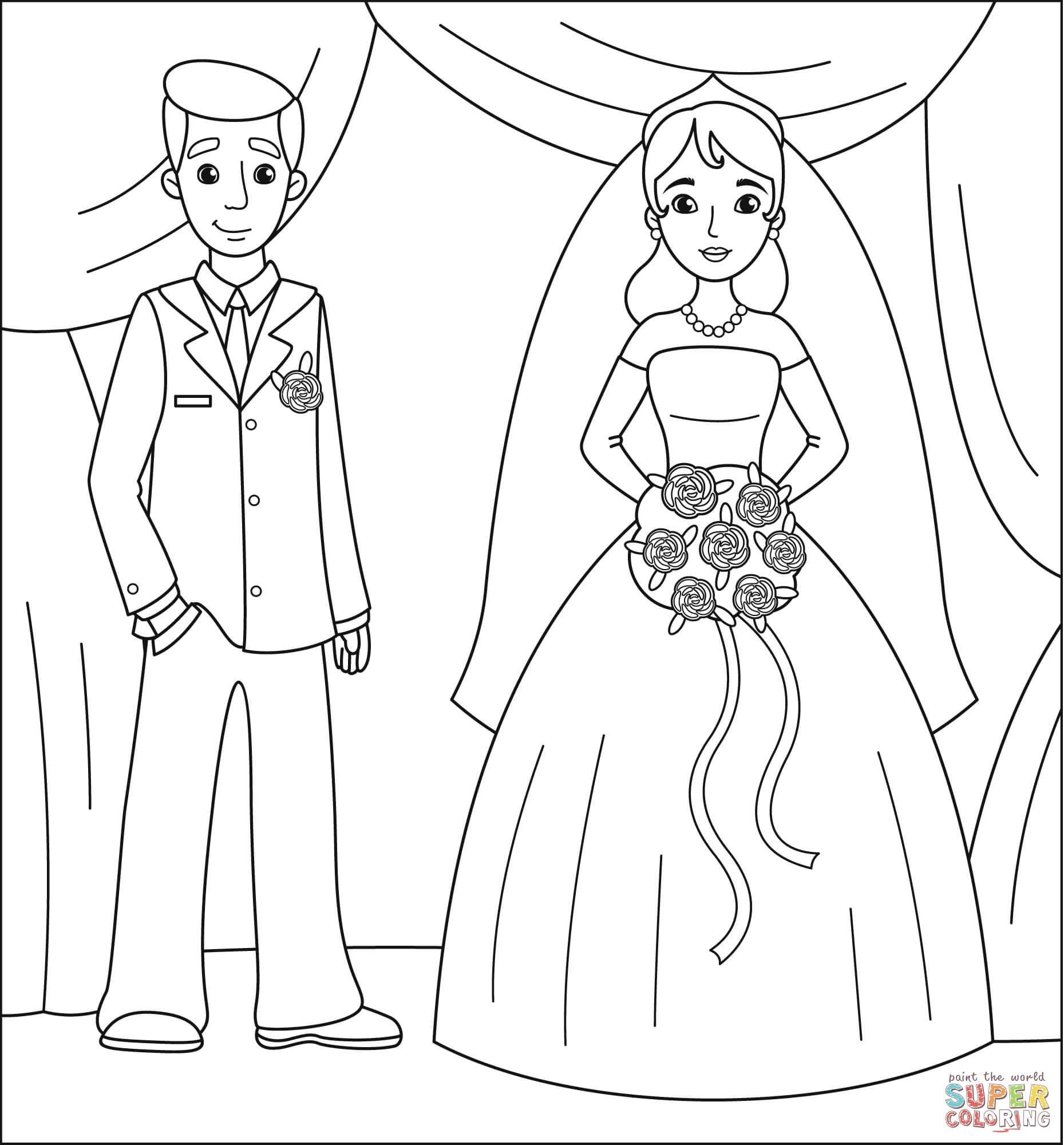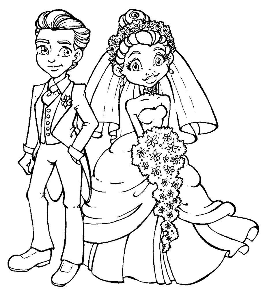 Раскраска жених и невеста свадьба
