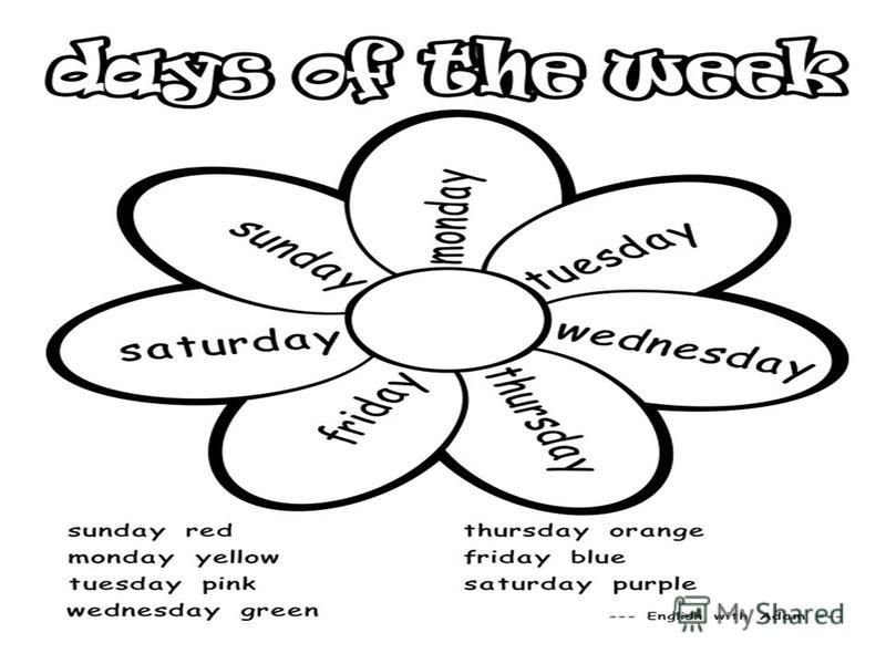 Дни недели на английском раскраска