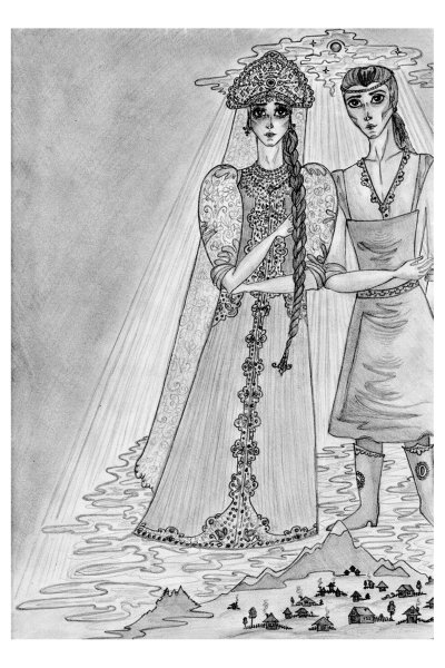 ![Рисунок русской красавицы]()