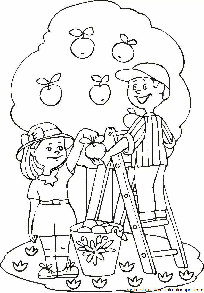 Раскраски сбор урожая осенью для детей
