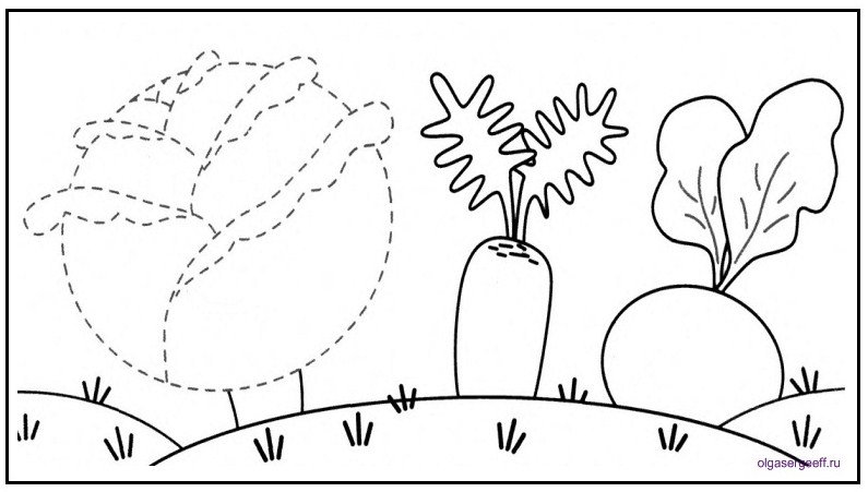 ![Раскраска овощи на грядке]()