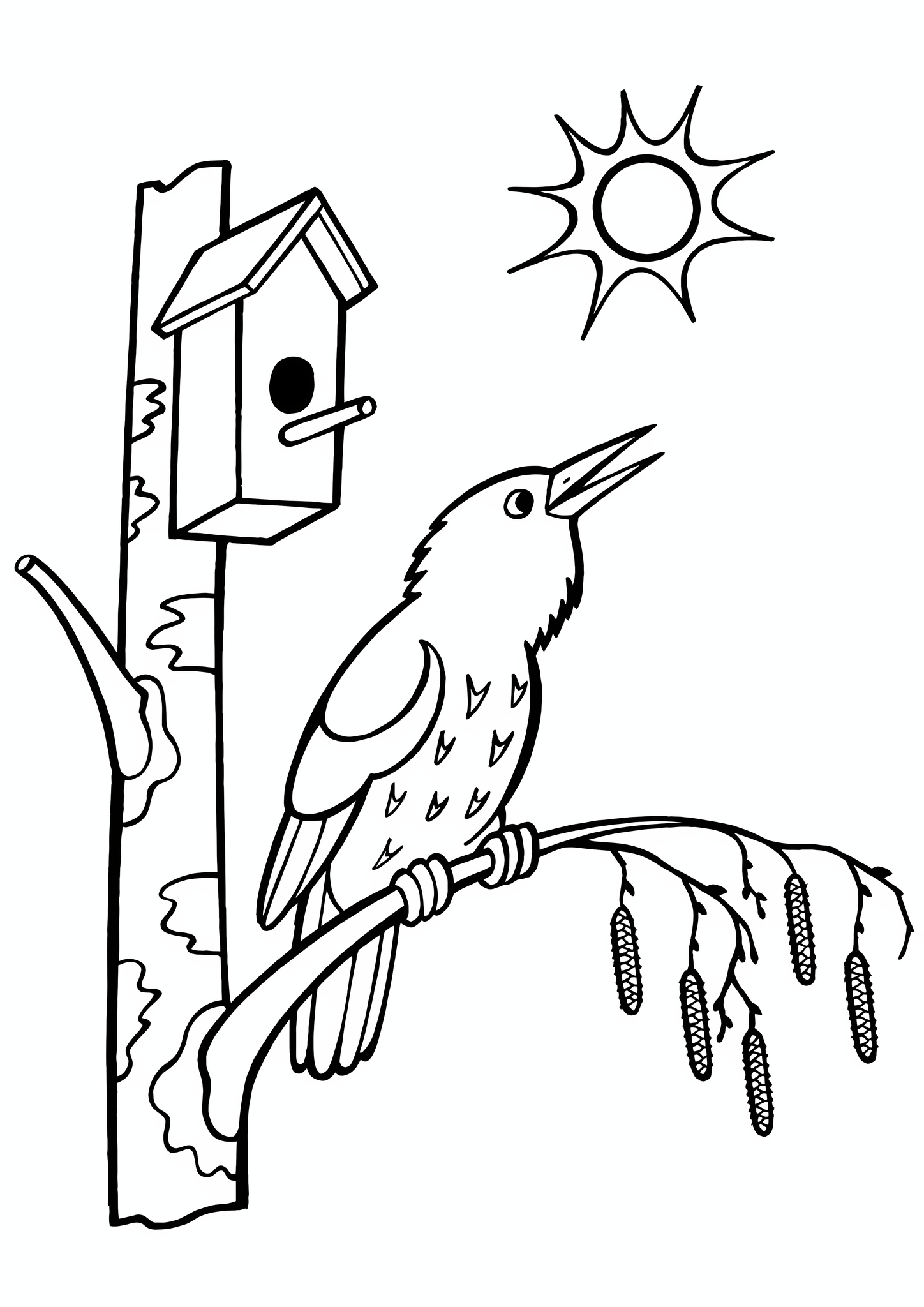 Птичка на дереве раскраска