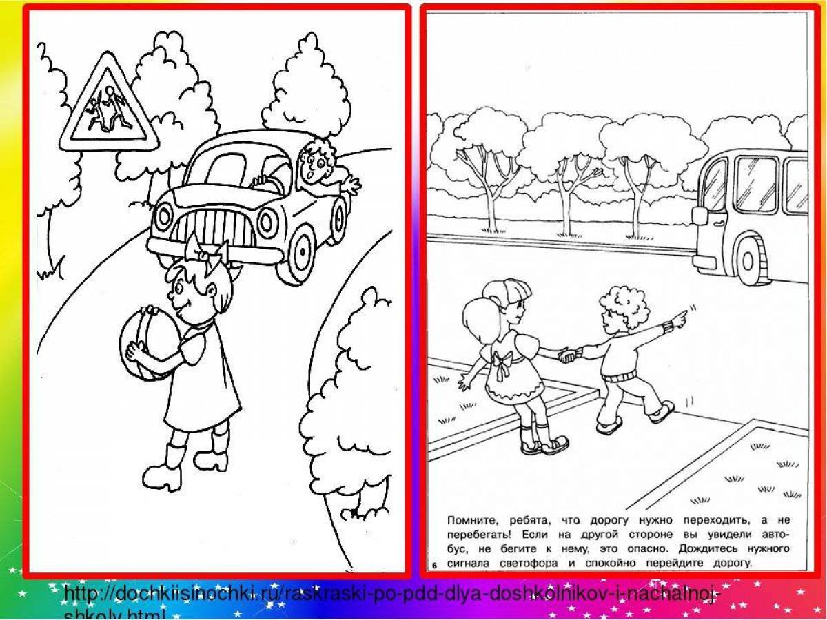 ![Безопасная дорога детям для раскрашивания]()