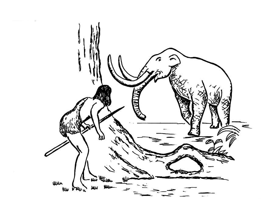 ![Первобытный человек раскраска]()