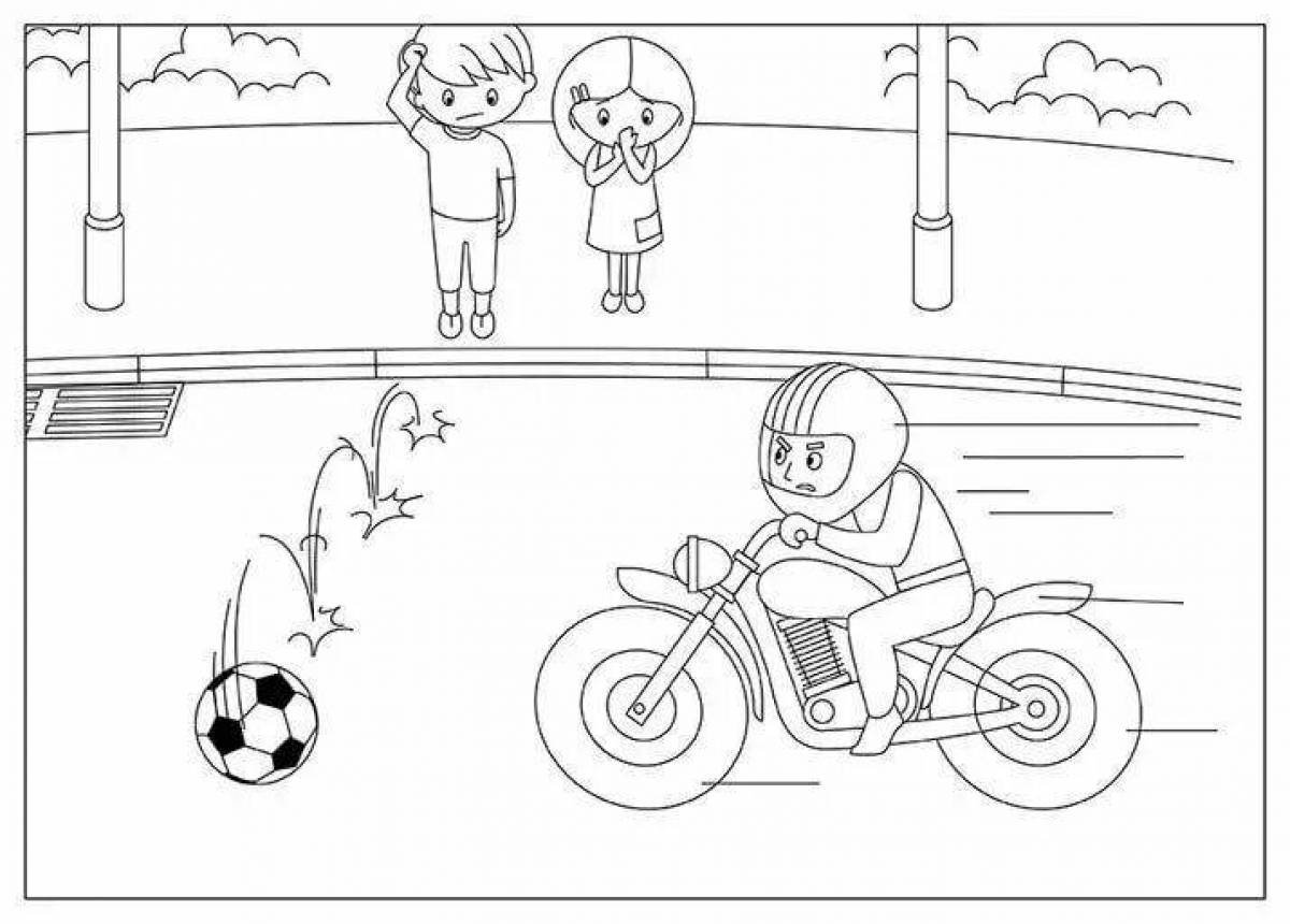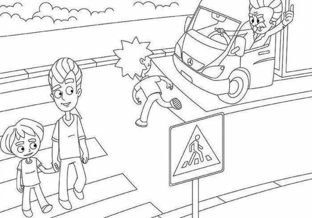 ![Рисунок правила дорожного движения для детей в садик черно белый]()